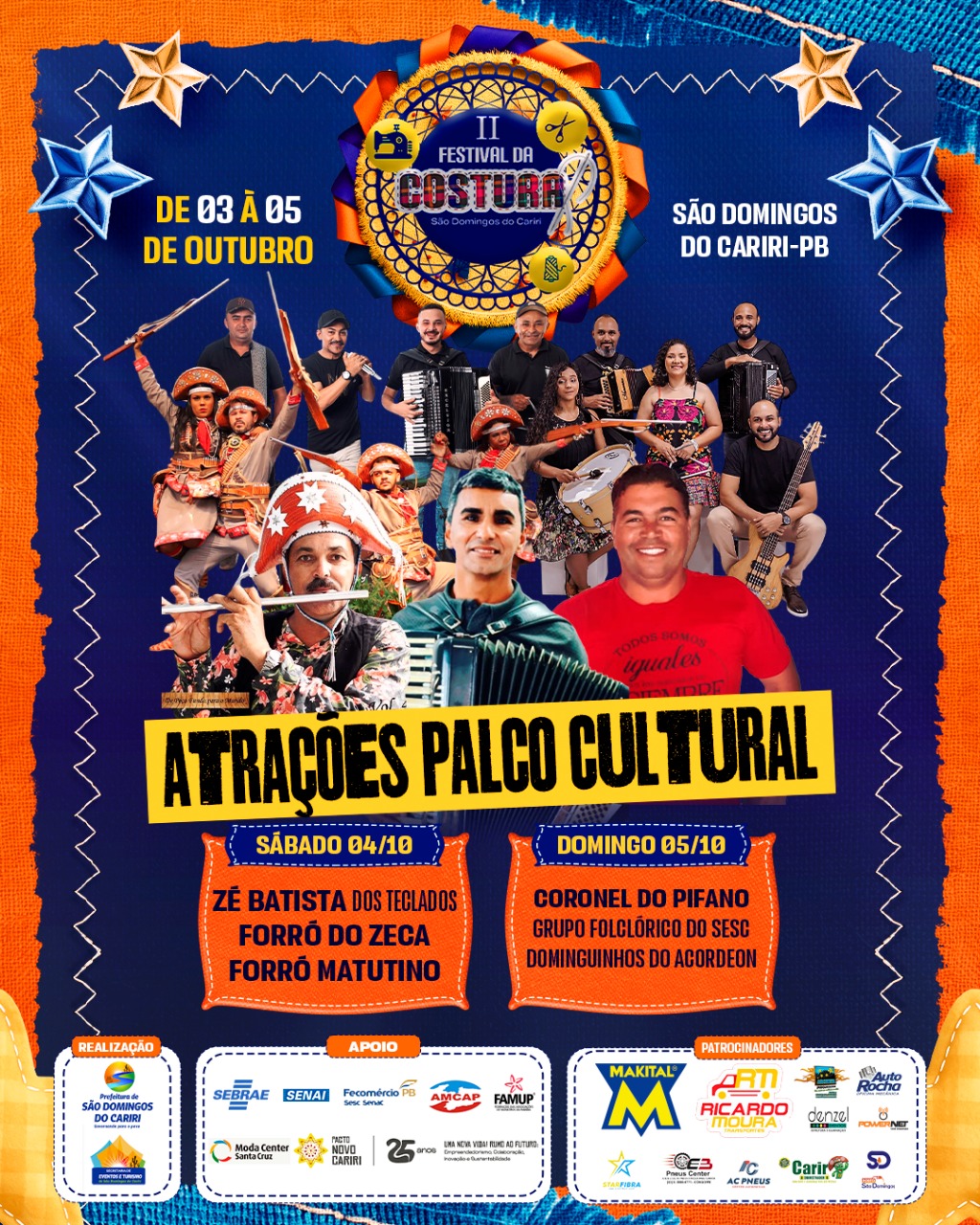 Em sua 1ª Edição, a cidade de São Domingos do Cariri-PB, a partir da iniciativa da Prefeitura Municipal, apresenta o Festival da Costura, onde serão destinados espaços para expositores, feira de oportunidades e negócios no segmento de confecção. O evento surge com a missão de fomentar a melhoria do empreendedorismo sustentáveis, promovendo o município e sua região.