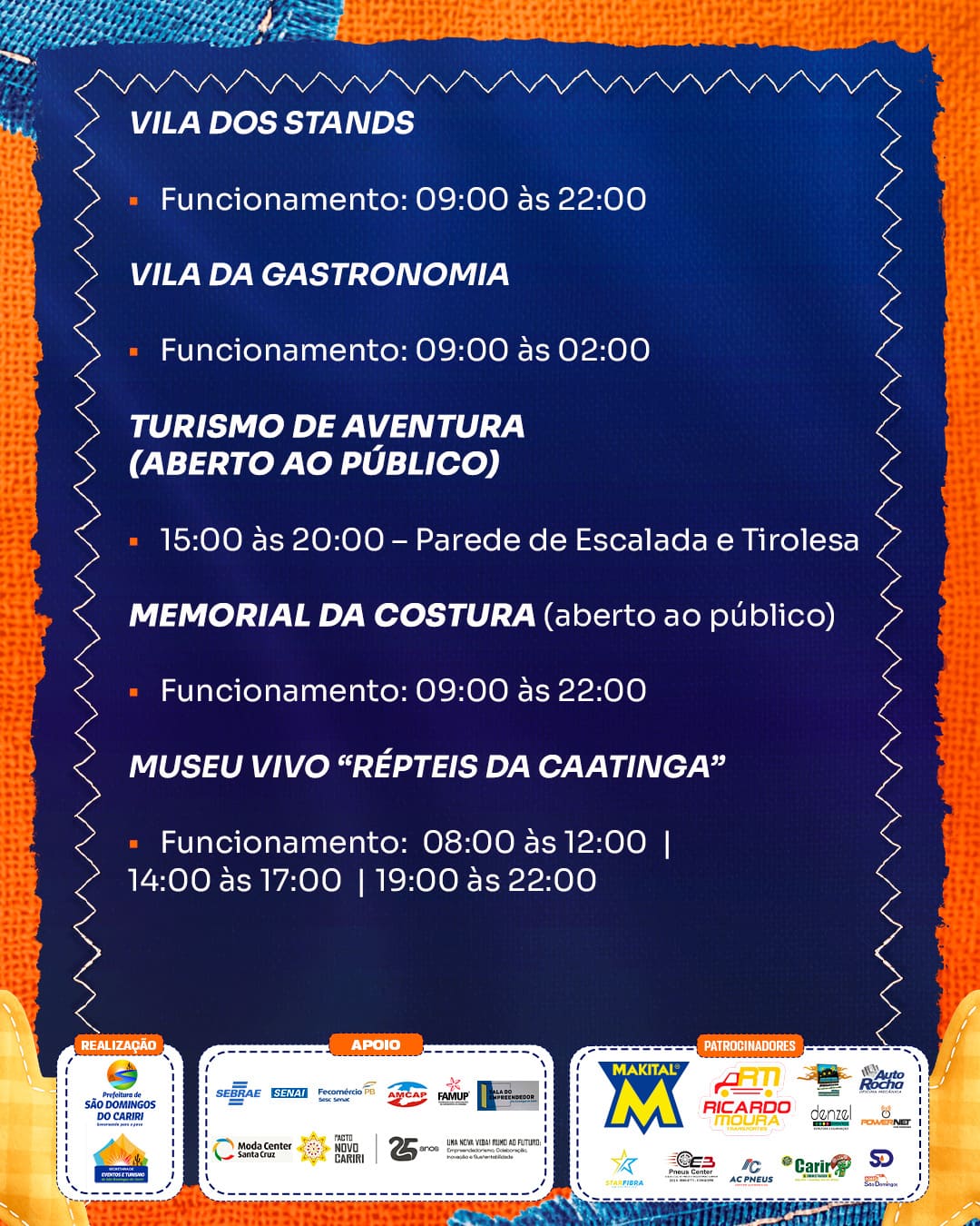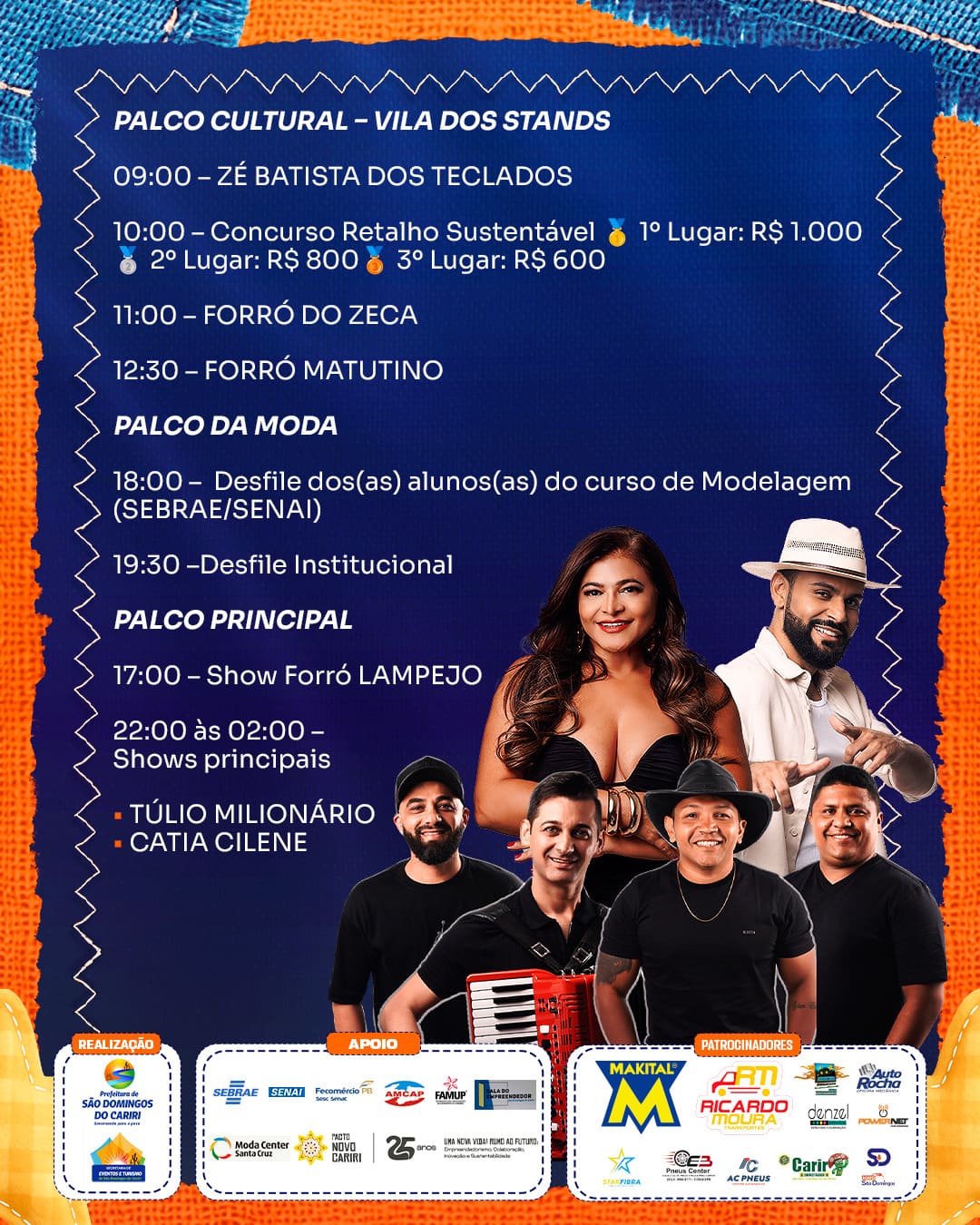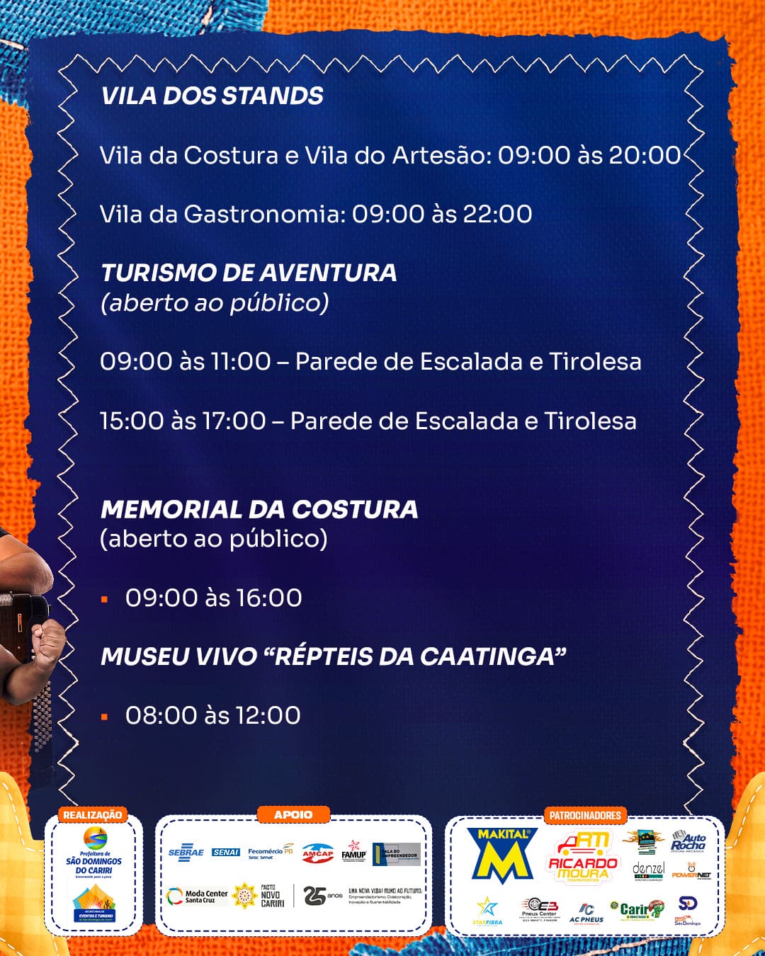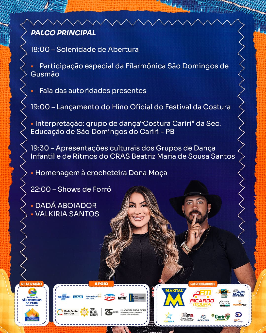 Tudo isso e muito mais, o FESTIVAL DA COSTURA representara uma oportunidade de indução ao desenvolvimento econômico de São Domingos do Cariri e demais municípios da região.